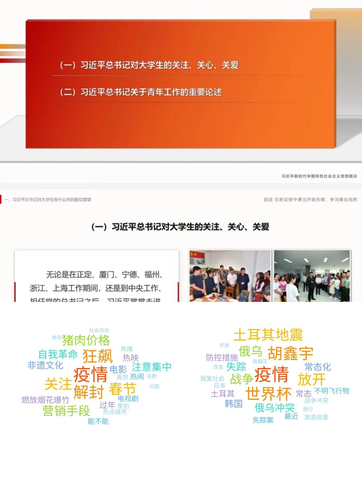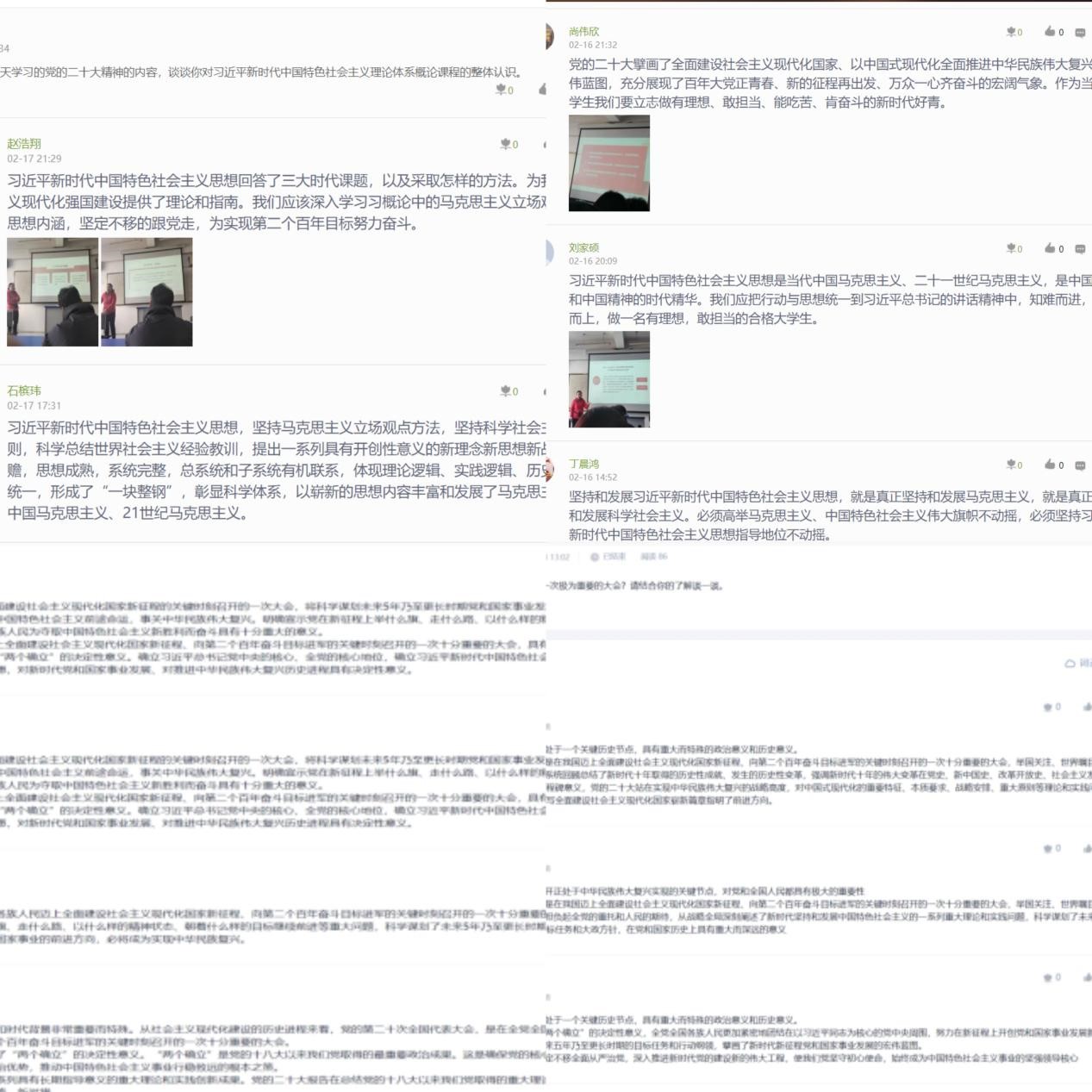 教研室教师围绕深入学习宣传贯彻党的二十大精神组织学生展开深入学习,强化问题导向,聚焦疫情防控工作,直面学生存在的普遍性思想困惑、具有的代表性认识观点,做重点专题的理论阐释和现象解析,为学生解疑释惑、注入思想正能量,引导学生心系国家事,努力做到肩扛国家责。