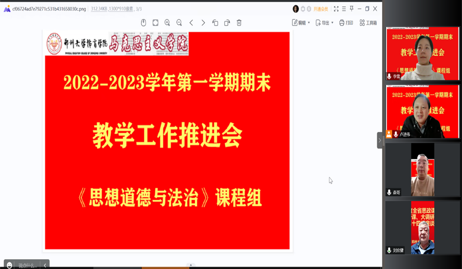 2022年12月16日,《思想道德与法治》课程组召开2022--2023学年第一学期期末教学工作推进会,课程组全体教师参加。