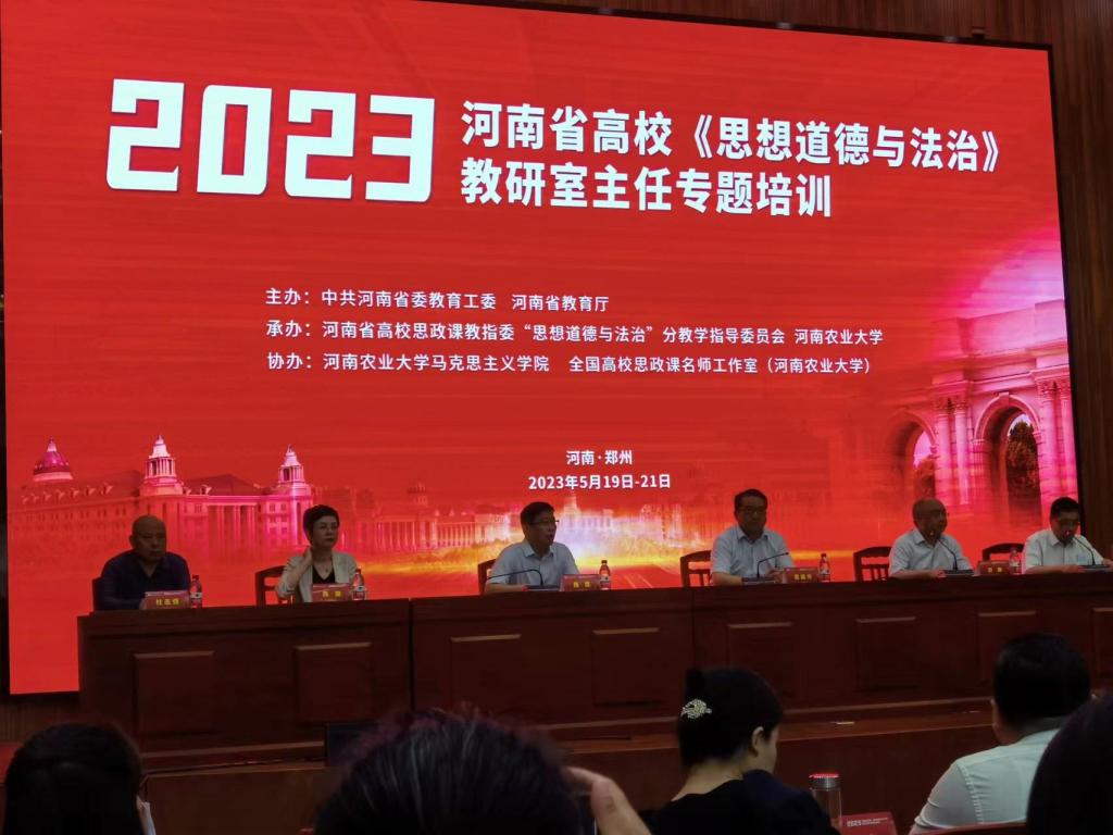 为持续贯彻落实习近平总书记关于思政课建设的重要论述精神,深入推进习近平新时代中国特色社会主义思想和党的二十大精神进教材进课堂进头脑,认真实施高校思政课教师能力提升攻坚行动,2023年5月20日—21日,中共河南省委教育工委、河南省教育厅在河南农业大学举办了全省高校《思想道德与法治》教研室主任专题培训班,我院德育教研室主任卢进伟老师参加培训。