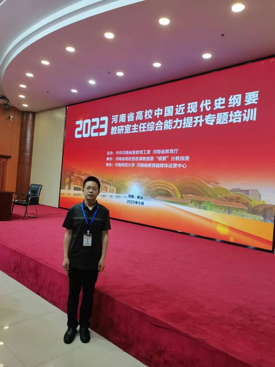 为持续贯彻落实习近平总书记关于思政课建设的重要论述精神,深入推进习近平新时代中国特色社会主义思想和党的二十大精神进教材进课堂进头脑,认真实施高校思政课教师能力提升攻坚行动,2023年6月3—5日,中共河南省委教育工委、河南省教育厅在河南师范大学举办了全省高校《中国近现代史纲要》教研室主任专题培训班,我院马海杰老师参加了此次培训。