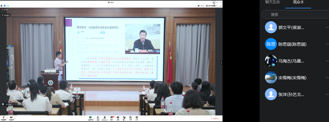 古今联系、主题主线与细节兼顾等视角从大历史观展开教学,围绕“三思”(思“危”、思“退”、思“变”)和“三讲”(讲“深”、讲“透”、讲“活”)联系“纲要”教材第五章内容分析了一线思政课教师怎么看怎么办的问题,有理有据分析并呈现了“纲要课”的授课思路,令人耳目一新,的确是一堂精彩的展示课,让老师们对如何上好“纲要”“概论”课有了深刻理解和全面把握。