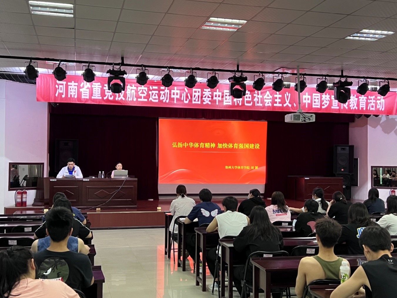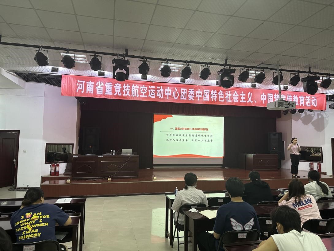 为宣传贯彻习近平新时代中国特色社会主义思想,激发广大团员青年热爱党、热爱祖国、热爱社会主义的情感,促进精神文明建设,弘扬中华体育精神,加快体育强国建设。应河南省重竞技航空运动中心团委邀请,6月15日晚,我院刘颖博士进行中国特色社会主义和中国梦宣传教育讲座。该中心团委委员、各团支部书记、优秀团员、优秀运动员共计120人参加。