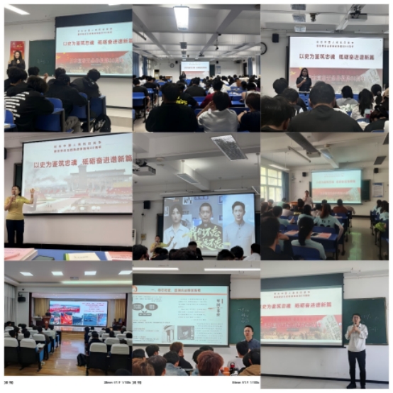 在校本部和登封校区的课堂上,教师们以“九一八事变”“七七事变”“南京大屠杀”等重要历史事件为切入点,借助影像史料全面回顾中华民族十四年抗战的艰苦历程。师生共同感悟全民族抗战中所展现出的“地无分南北,人无分老幼”的觉醒与担当,结合课程内容融入感人抗战事迹与新时代伟大成就的对照讲解,深刻体会中国共产党的中流砥柱作用。课堂不仅实现对抗战历史的知识传递,更推动学生把历史认知转化为血脉中的家国情怀,明确新时代青年的责任与使命。