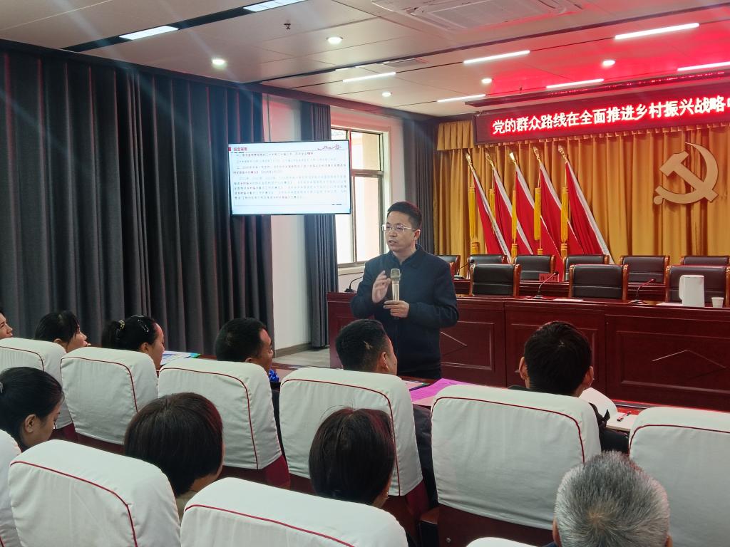 为了进一步筑牢基层党员干部理想信念之基、不忘初心,牢记使命,10月22日下午,我校马克思主义学院教师马海杰博士受学院驻温县赵堡镇西马村工作队邀请在赵堡镇政府以“党的群众路线在全面推进乡村振兴战略中的重大意义”为题为全镇党员干部上了一堂生动的党课。