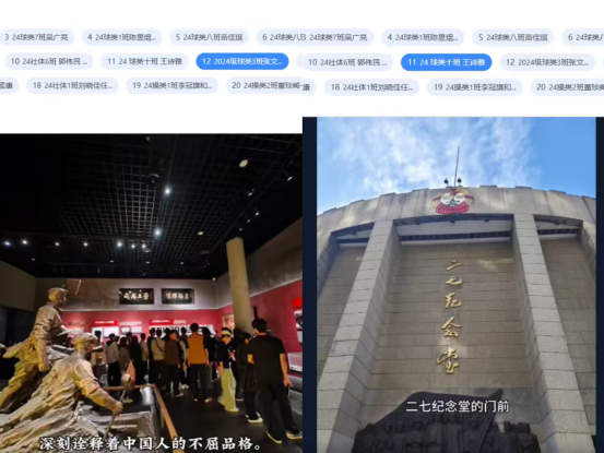 老师们对本学期“场馆里的思政课”学生活动成果,进行了细致的梳理与评审。大家围绕学生提交的微视频成果,从主题契合度、内容深度、实践创新性以及思政元素融入效果等多个维度展开讨论。评选时,老师们特别关注学生是否通过场馆参观与实践活动,将理论知识与历史现实紧密结合,是否展现出对红色文物的深刻理解和情感认同。对于评选出的优秀作品,老师们给予了高度评价,并提出了进一步优化的建议,为后续课程实践教学的开展积累了宝贵经验。活动评选出一等奖作品2项,二等奖作品22项,所有学生作品已内置在线上课程章节中。
